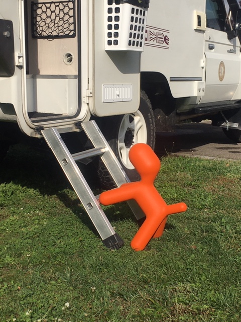 Armé de toutes ces bonnes idées, il fallu néanmoins trouver les artisans consciencieux qui sauraient mettre en musique la partition, ce fût chose faite grâce aux deux animateurs de l’Atelier du Véhicule de Loisirs à Cernay et notamment Dino qui n’a pas ménagé sa peine pour revoir complètement les ouvertures sur le toit de la cellule ainsi que leur étanchéité, le tout complété par la pose d’un convertisseur pur sinus 12-220v 800w. C’est également Dino qui nous a développé un support spécifique permettant l’ajout d’un radar de recul bien utile lorsqu’on est seul à bord.