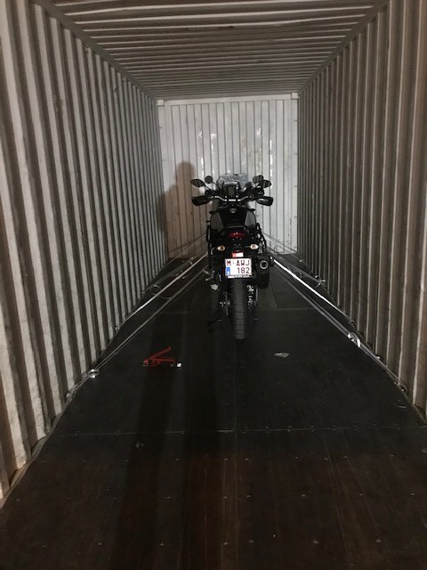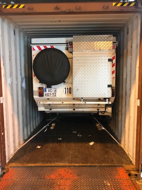 Pour ma part c’est avec soulagement que je les ai laissés à l’entrepôt Ziegler SA sur le port d’Anvers. En effet les derniers mois de préparation (y compris la réparation de notre chauffage/chauffe-eau Truma une semaine avant le départ) ayant été relativement intenses, le dépôt clôture donc cette étape.