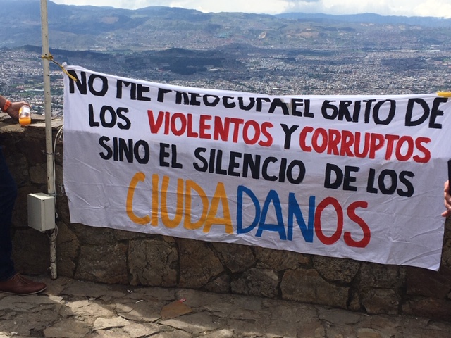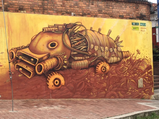 Our first steps in Bogota were cautious ones following the recent social protests and resulting government imposed curfew which took place just days prior to our arrival. Hundreds of thousands of people had taken to the streets to protest against government corruption, austerity measures (Colombia is one of the countries in South America with the largest gap between rich and poor), and lack of enforcement of the peace process with the Revolutionary Armed Forces of Colombia (FARC). Vandalism and looting also occured during the protests and environmental and animal rights activists and women’s rights groups also joined in the protests. A nationwide strike is planned for December 4th. Interestingly, a general strike (to protest reforms to the retirement system) is planned for December 5th in France, illustrating the similarities between the social mouvements taking place simultaneously across many countries around the world at this time. Increased police and military presence is currently evident everywhere and as a tourist, this is both comforting and unsettling.