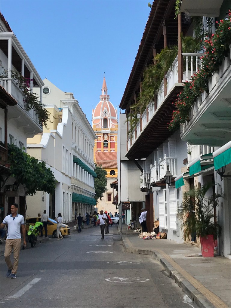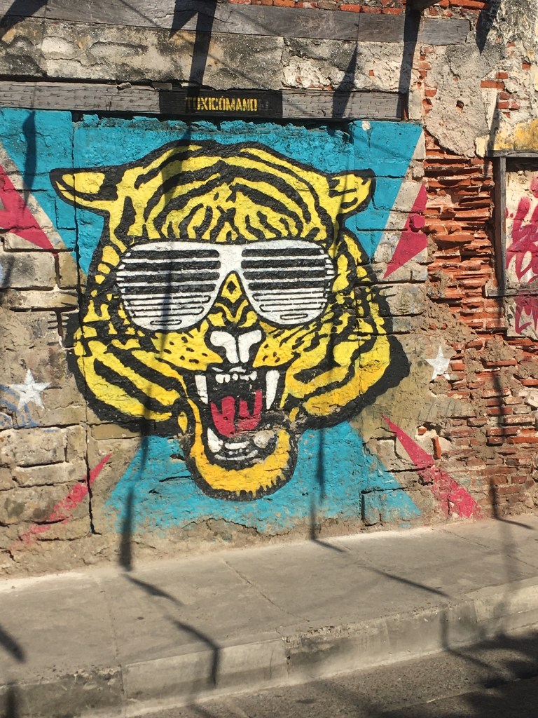 Après Bogota ‘la fraîche`, nous avons rejoint sur la côte caraïbe Carthagène des Indes la ‘caliente` ! Ici la température descend rarement en dessous de 27°C la nuit. La ville a beaucoup changé depuis mon dernier passage en 1992, les vielles maisons coloniales délabrées ont été pour la plupart rénovées sans faute de style. Mais le tourisme de masse est passé par là et le charme désuet des années 90 a laissé place au commerce intensif. Le déferlement des touristes à chaque arrivée d’un bateau de croisière géant est impressionnant : tout la veille ville s’active pour transporter, alimenter, désaltérer et équiper de colliers, chapeaux et autres objets d’artisanat local ou non tous ces bons touristes. Il y en a pour tout les goûts toutes les bourses, du bracelet made in Venezuela ou China, au sac Louis Vuitton authentique. En tout cas l’architecture coloniale de la ville a toujours autant de charme et les Carthagenois toujours autant de gentillesse et de générosité a offrir, il faut juste savoir se perdre dans les quartiers un peu moins touristique et profiter d’un bon ‘sancocho` (soupe de légumes avec yucca, pommes de terres, plantain, oignons, maïs et au choix poulet, bœuf etc.) dans un resto populaire ou la serveuse vous gratifiera d’un ‘mi amor` qui claque sa mère à chaque passage !