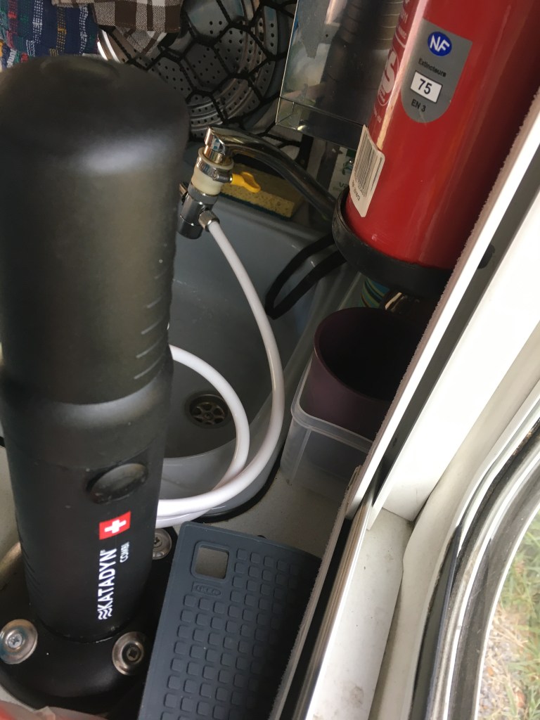 Thank you as well to Viviana and Oriol who put us in contact with a local craftsman who custom made a metal extension for our water faucet in the camper, allowing us to finally hook up and use our water filter.