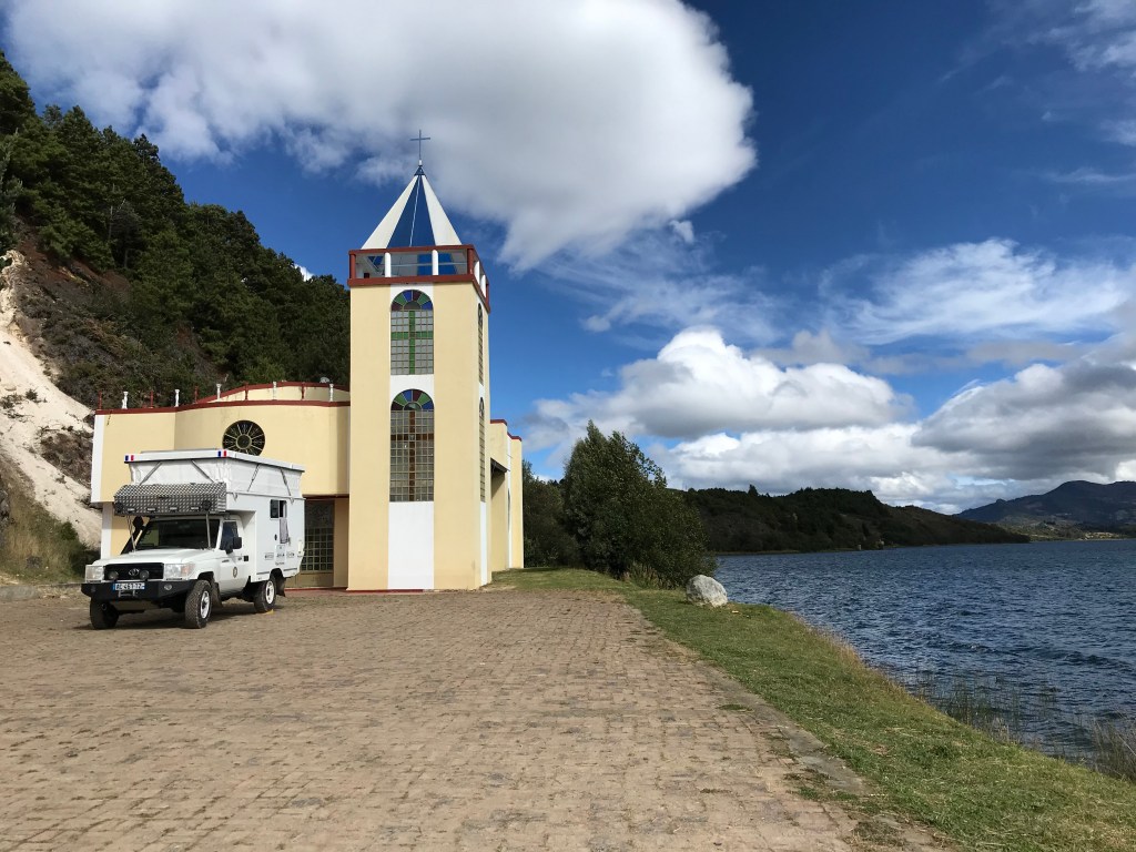 Among the people we met was a local family at Laguna de Tota, who was visiting the church located at the site where we were camping for the night. They were excited to learn about our travel plans and happy to receive a guided visit of the camper. Before leaving us for the night, they gave us some locally grown potatoes to sample…..delicious!
