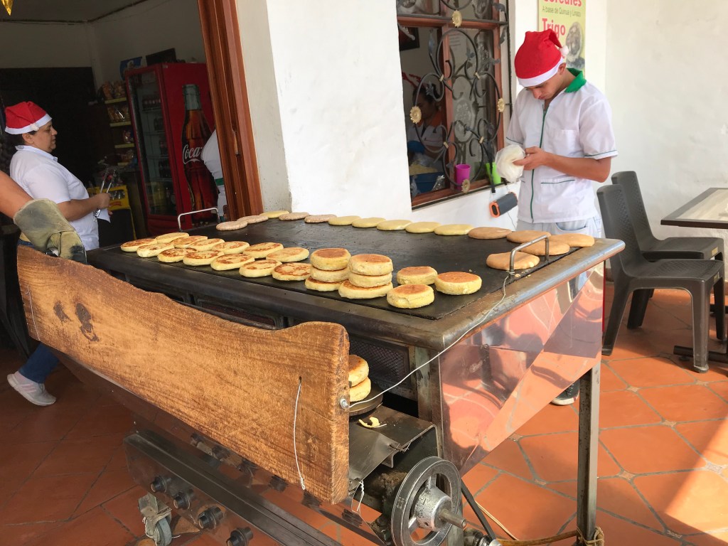 Special thanks to Luis and Lida who we met at our overnight spot at Villa de Leyva. This couple from Medellin took us under their wing, provided us with useful travel tips, and helped us arrange a visit to their Toyota garage in Medellin to have some engine issues checked out. They also introduced us to a delicious local specialty, Arepa, a flat pancake made from wheat or corn and stuffed with cheese.