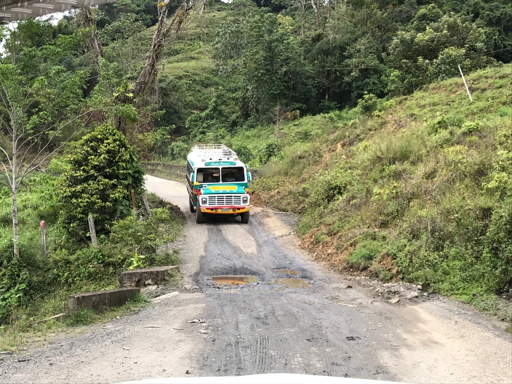 The great scenery and charming towns came at a price as we drove one of the worse roads we have ever taken, highway 62 between Barbosa and Puerto Araujo. The vehicles we crossed were jumping back and forth from the left to the right lane to avoid huge holes, bumps, and other obstacles due to the deformed surface of the road which alternated arbitrarily between paved sections and gravel. Not only was the road really bad, but it was also very curvy with many hairpin turns. Yee ha! We also discovered that the solution we had found in France to regulate the amount of diesel injected into the engine based on the elevation we were at (altitude compensator) did not seem to really have an effect here; the result being black smoke from the exhaust, even at relatively low elevations (from 1500 meters up) and labour intensive ascensions. We are assuming that the quality of the diesel here in Colombia might be a contributing factor.