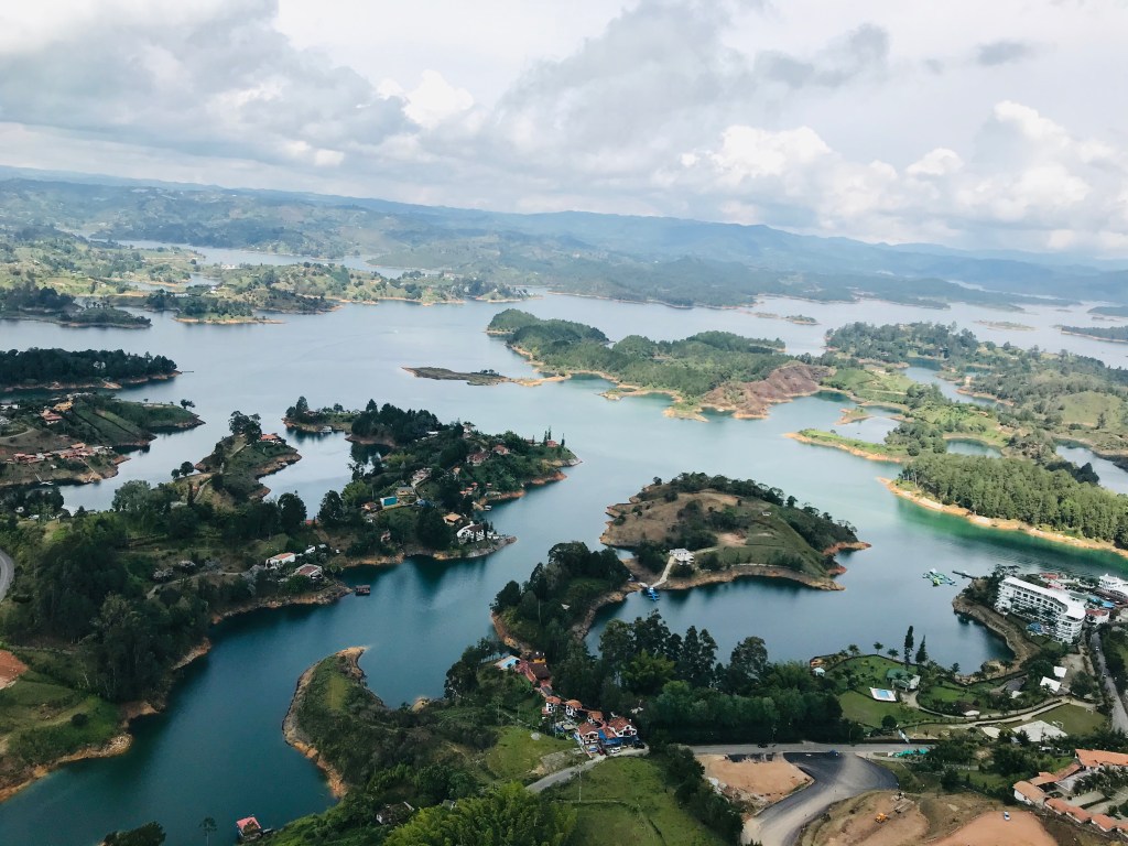 During our stay in Medellin we heard a lot about the resort area of Guatapé and were eager to get out of the city and into the beautiful natural surroundings that awaited us, just east of Medellin. Guatapé is known for its large lake with many branches, inlets, and islands, and for the Piedra del Peñol, a 220 m high granite monolith with 740 steps that can be climbed to be rewarded with a 360 degree view from the top. It is a popular resort area and many locals have secondary residences there. The town of Guatapé is known for its colorful houses with bands of sculpted and painted friezes.