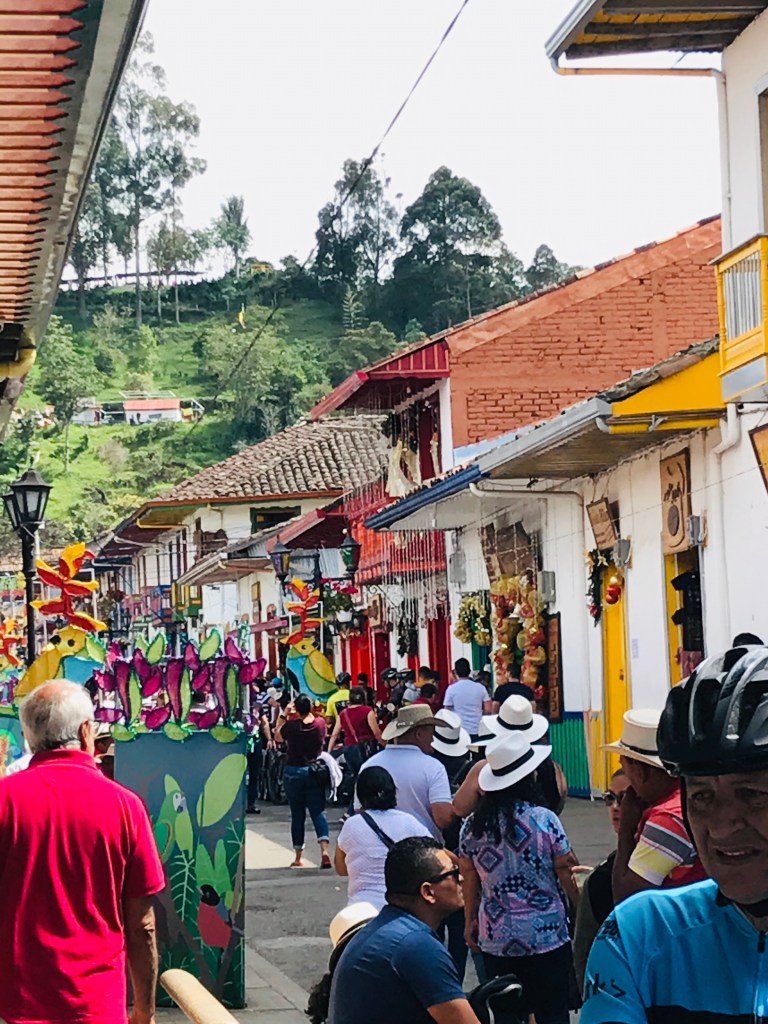 It was Salento’s birthday celebration the weekend we were there and it took us about an hour to drive the 4 kilometers or so into town from the main highway. There were people and cars everywhere and agents directing the traffic along the steep streets. Music and other festivities until 4 am (Colombians love their music)! Had the best frijoles ever!