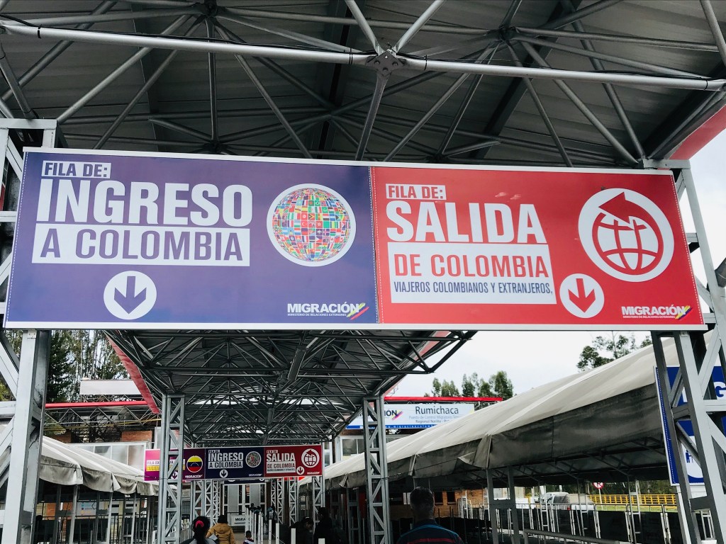 Arrivés proche de la frontière nous avions hâte de passer de l’autre côté pour entamer une nouvelle page de notre voyage. C’est donc un dimanche après-midi que nous avons effectué notre sortie de la Colombie et l’entrée en Equateur. Formalités ultra rapides 1h au total. Tout d’abord présentation des passeports au guichet Colombien de l’immigration où sortants et entrants se croisent, puis surtout ne pas oublier de mettre fin à l’importation temporaire du véhicule (sinon gare aux ennuis lors d’une visite future du pays !). Tampons de sortie en poche direction le poste frontière Equatorien, surtout ne pas passer la frontière par inadvertance comme c’est arrivé a une famille de voyageur rencontré sur la route. Donc ne voyant aucune indication précise d’un guichet pour la déclaration d’importation temporaire de Tommy je demande à un militaire totalement captivé qui m’indique vaguement un emplacement de l’autre côté de la route. Aïe ! il faut couper 3 files de véhicules pour rejoindre ledit emplacement qu’à cela ne tienne on va le faire “à la Colombienne” c’est-à-dire en forçant lentement le passage à angle droit et ça marche pas un seul coup de klaxon ! .