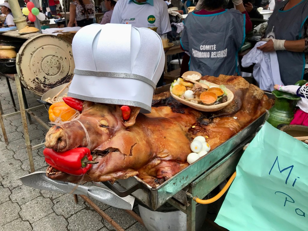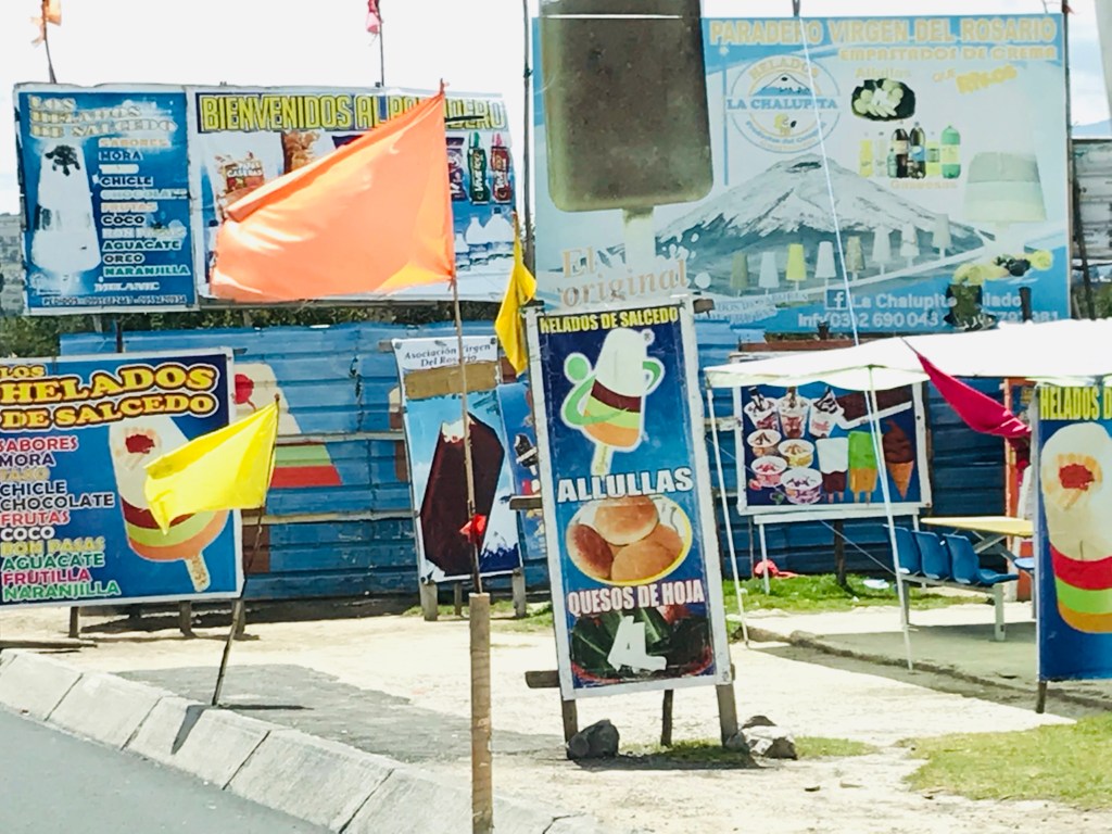 - on pourrait (presque toucher le ciel), en prenant le téléférico de Quito qui vous dépose à un peu plus de 4000m, même les poulets tentent l’expérience!