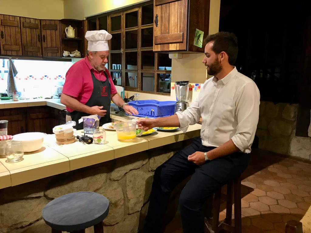 - c’est ici que vivent les deux Pablos Claveria Señor et Junior incroyables hôtes Espagnols qui reçoivent “royalement” les voyageurs à la sortie de Cuenca dans une forêt d’Eucalyptus