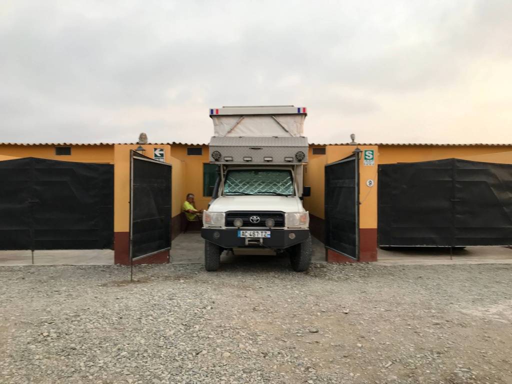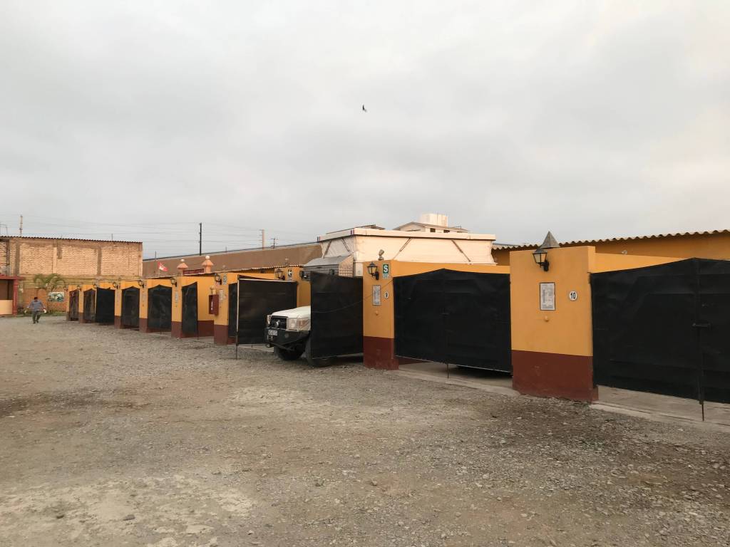 Therefore, rather than wild camping, it is often better to pay for a hotel room or a secured parking lot. We came across this rather strange looking motel in a town called Barranca, north of Lima. Normally one can enclose their motel room and their vehicle behind an individual closed gate. However, as Tommy was just a bit too long to fit, we had to leave ourselves exposed to the dangers of the night (hahaha) !