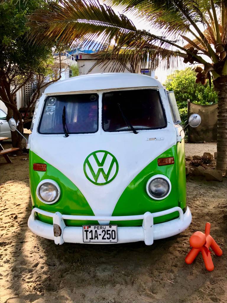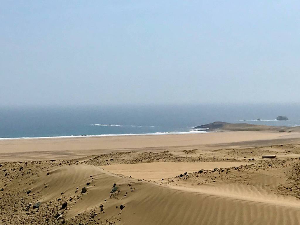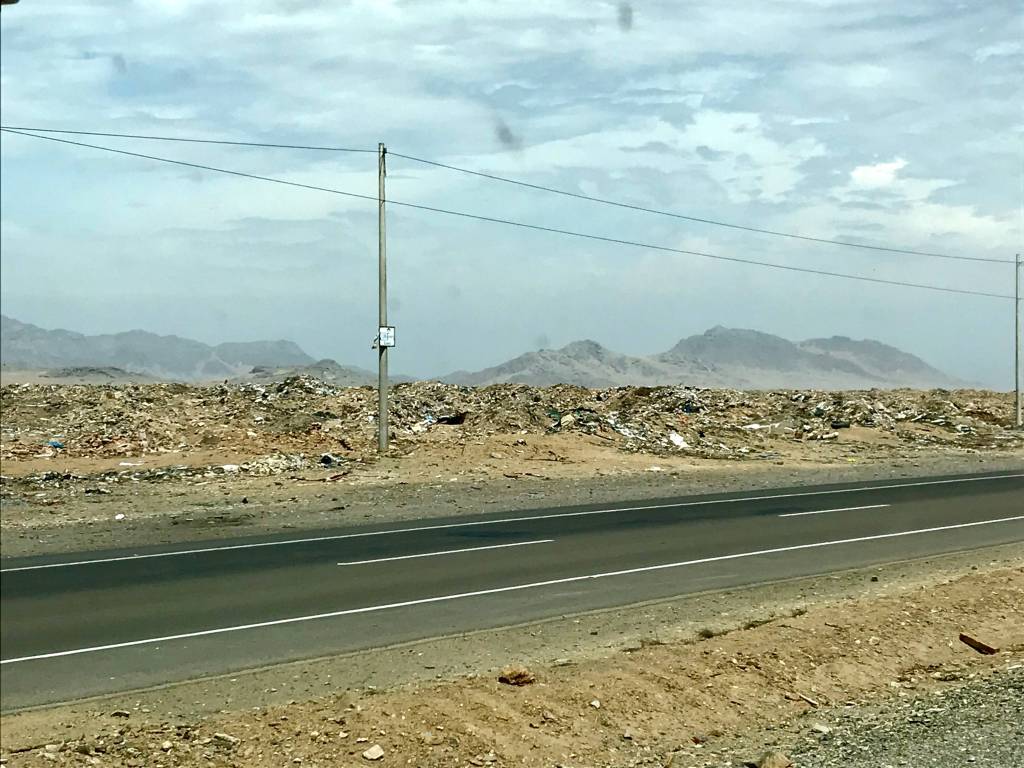 The beach at this campground is little piece of paradise after the surprising drive down from the border. Surprising for different reasons : First of all, we observed an obvious difference between the landscape and infrastructure in place once we had crossed over into Peru. Ecuador was perceived by us as an extremely modern country with a well maintained highway network that often seemed too luxurious for the amount of traffic we encountered. The generous perfectly maintained multi-laned divided highway suddenly disappeared and was replaced by a one-lane undivided road in need of repair. The road system in general seems quite good, at least along the coast, but not to the same standards as in Ecuador (better than Colombia though). We found the « authenticity » that seemed to be a bit lacking in many parts of « Americanized » Ecuador and the traffic in the streets was once again similar to that we had experienced in Colombia in terms of density. People and dogs everywhere and hundreds of tuk tuks (the type and style of the tuk tuks change depending on the region) zig-zagging in all directions ! What was the most surprising and disturbing observation, and one that you need to be blind to miss, is the amount of garbage everywhere in the cities, towns, and in the middle of the nature. Plastic bags flying around, bottles, paper, cans, etc., literally piled up on the sides of the roads and in the fields. Most of the Pacific coast is desert and it is quite shocking to see plastic in the most improbable setting of sand dunes. There is an obvious need for increased public awareness and education on recycling, and the neighbours to the north are a step ahead with their special recycling trash cans available in many public areas.