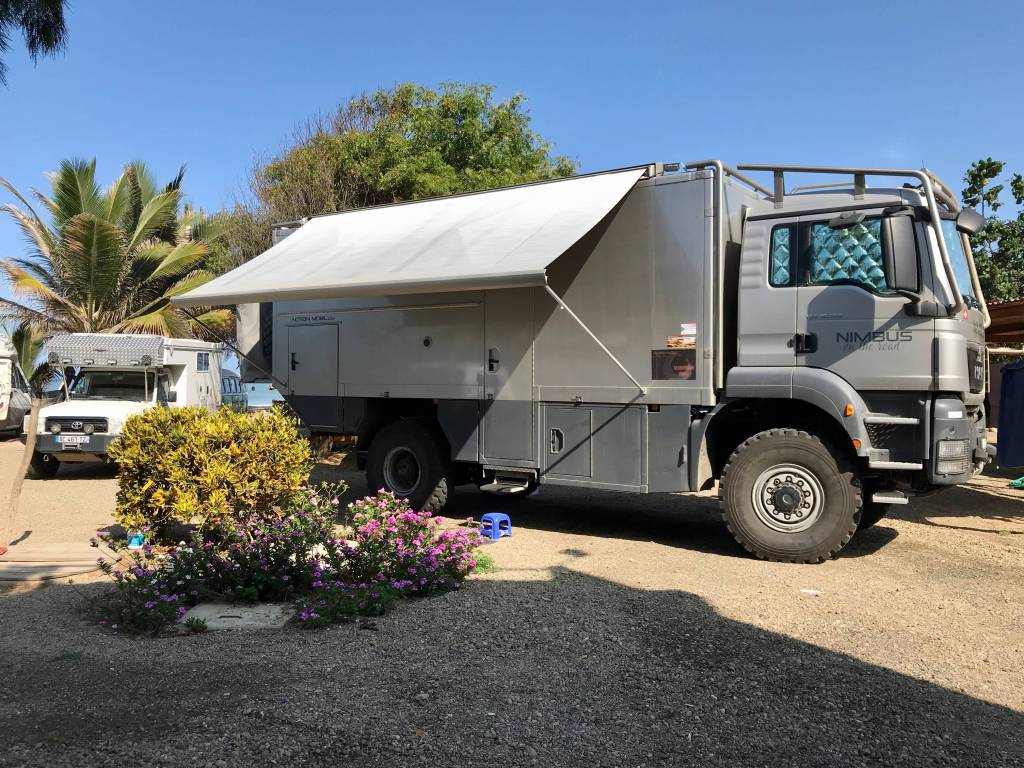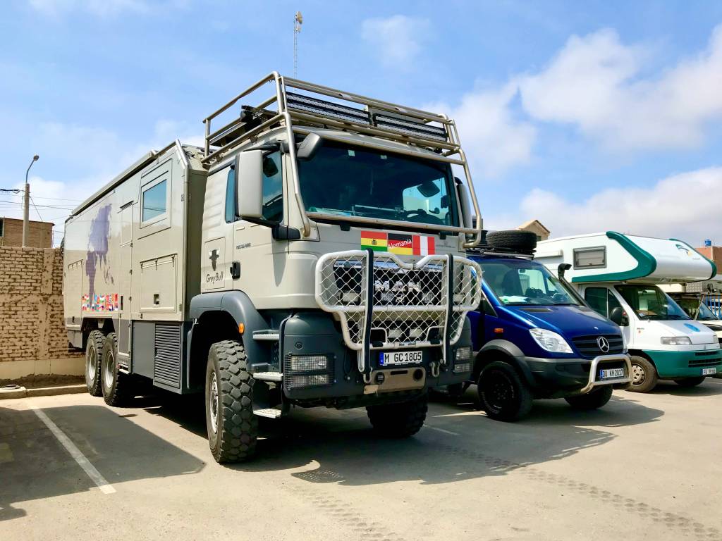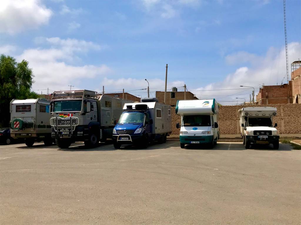 The museo Tumbas Reales de Sipan in Lambayeque also needs to be mentioned. This museum is reputed to be one of Latin America’s biggest and showcases 1400 objects of gold, silver, copper, bronze, sea shells, and ceramic. It is a museum that is dedicated to the royal tombs of the Lord of Sipan, a pre-Columbian sovereign, other royalty of this era buried some 1700 years ago, and the treasures that were buried with them. We have no photos as photography is forbidden inside the museum. However, we do have a photo taken in the parking lot of the museum which nicely illustrates a sociological observation we have made all along our voyage; there is a cultural link to the size of the vehicle one travels in as an overlander…….