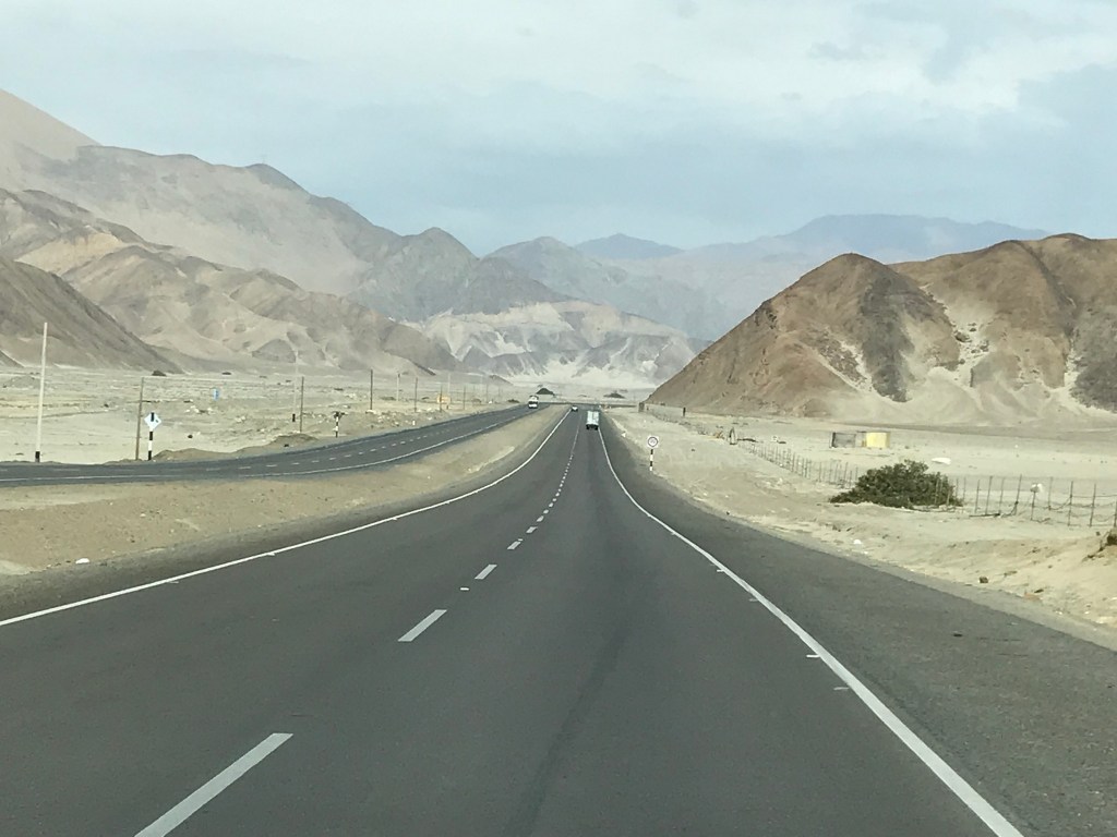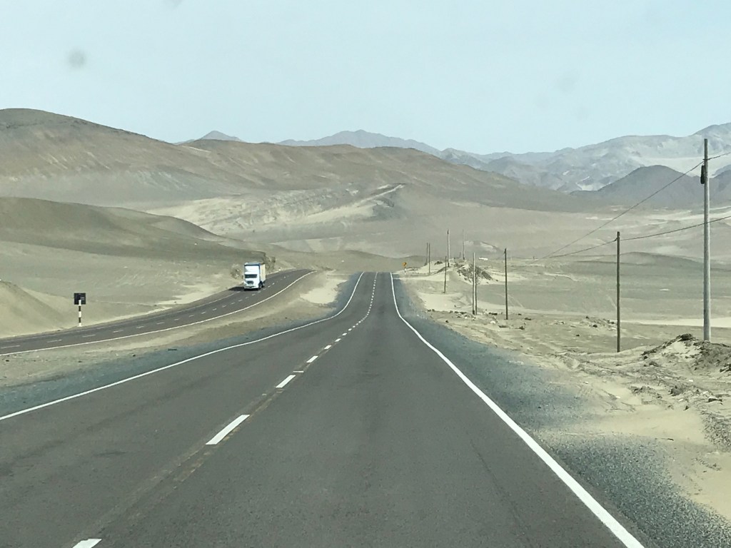 Après avoir visité Lima et laissé installer un relais pour stabiliser notre installation éclectique solaire nous avons repris la route tôt samedi sur les conseils d’Anne et d’Emmanuel afin d’éviter la migration estivale des Liméniens vers les plages du sud. Après quelques kilomètres seulement le désert reprend immédiatement ses droits, encore et encore sable, rocaille, dunes et peu à peu les monticules se transformeront en montagnes. Le tout entrecoupé d’oasis plus ou moins grandes qui sont annoncées par la présence de stands au bord de la route offrants les productions de chacune d’entre elles : mangues, bananes, avocats, canne à sucre, ou olives fraiches et différentes qualités huiles produites sur place.