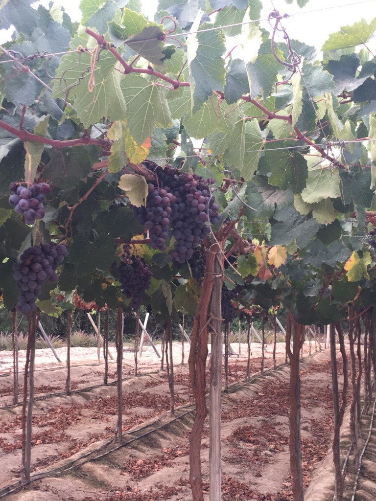 Puis un peu plus tard nous atteignons (enfin) Nasca et ses fameux géoglyphes qui me faisait tant rêver dans mes livres de géographie. Le site “classé UNESCO” s’étend sur plus de 500 km2. Nous faisons halte pour la nuit chez Alan Watkin qui dirige une ferme vinicole ne produisant qu’un seul cépage (Québranta) destiné à la distillation du Pisco. Comme c’est la saison des vendanges nous dégustons quelques grappes d’un raisin rouge très sucré (pour les connaisseurs 22-23 indice Brix). Alan aura d’ailleurs la gentillesse de nous organiser un survol en avion des fameux géoglyphes le lendemain matin. Décollage prévu pour 9h00 “car la visibilité depuis les airs et bien meilleure, et surtout ne prenez qu’un petit café suavé (léger) avant le vol, vous aurez le temps de petit déjeuner après” dixit Alan. Le survol se fait avec 4 autres passagers et pendant 45’ c’est un festival de figures géométriques absolument sublimes. Le pilote ne souhaitant déplaire à aucun passager nous a gratifier de passages quasi sur l’aile pour bien observer les figures sous l’aile d’abord côté droit puis immédiatement après un virage sec retour sur l’autre aile pour que chacun y trouve son compte. Cette technique de vol très “montagnes russes” (l’alarme d’inclinaison c’est déclenchée une fois au moins) nous a permis de mieux apprécier les conseils d’Alan a propos du petit café léger ! avant le vol, le pilote ayant pris soin d’insister sur la présence “d’un petit sac plastique situé dans la poche devant vous en cas d’urgence” !.