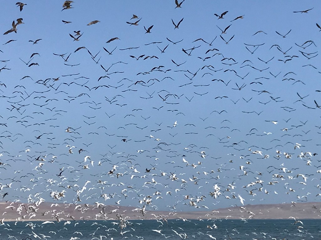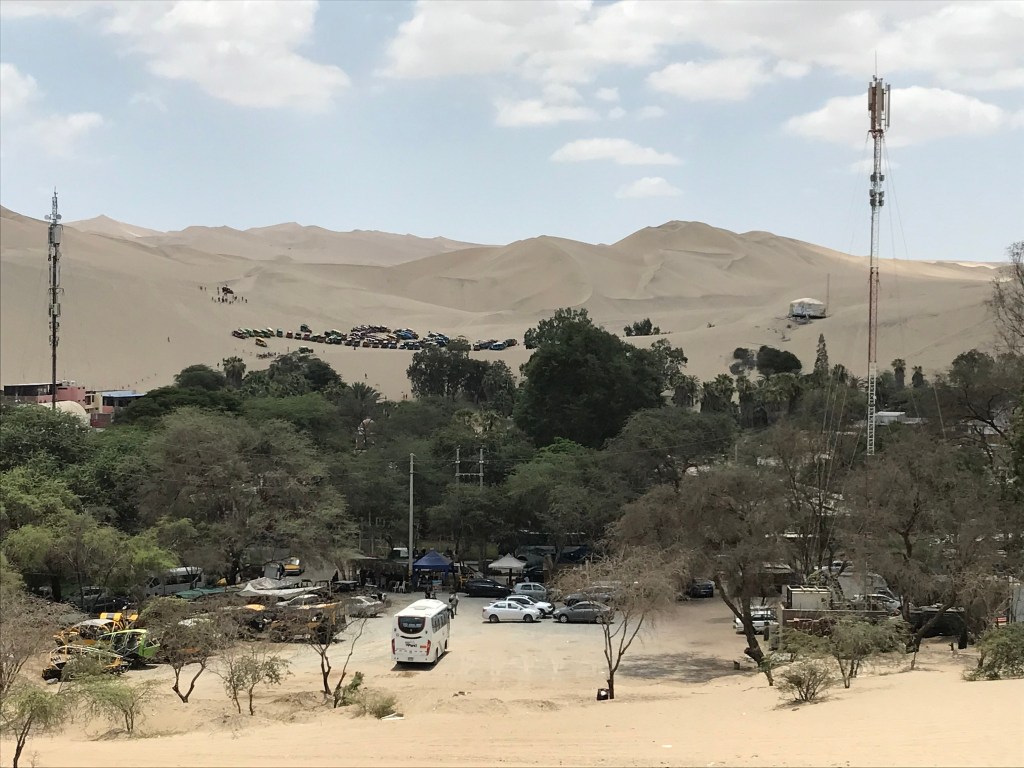 Sur la route du sud nous avons fait une halte sur la baie de Paracas, superbe lagune avec à l’extrémité du village un petit parking en voie sans issue parfait pour le petit déjeuner tout en contemplant les bancs d’oiseaux de l’importante réserve ornithologique. La taille et le nombre des méduses rencontrées sur la rive nous dissuadera d’envisager ne serait ce que d’y tremper une main pour prendre la température de l’eau. Un passage rapide à Ica pour voir les dunes et les centaines de touristes qui se pressent pour les parcourir en buggies 4×4 surpuissants et (sur) bruyants nous font reprendre la route quasi instantanément.