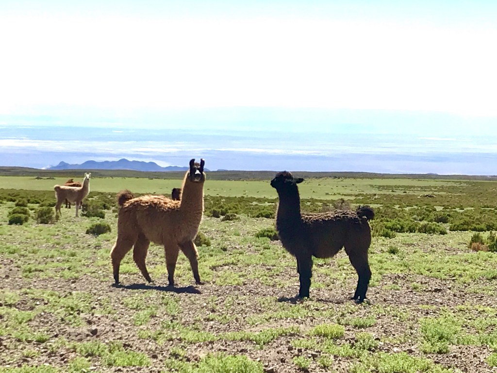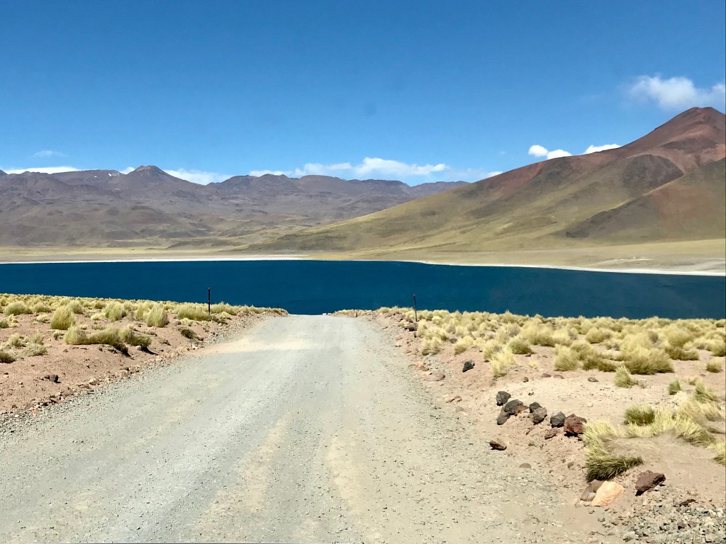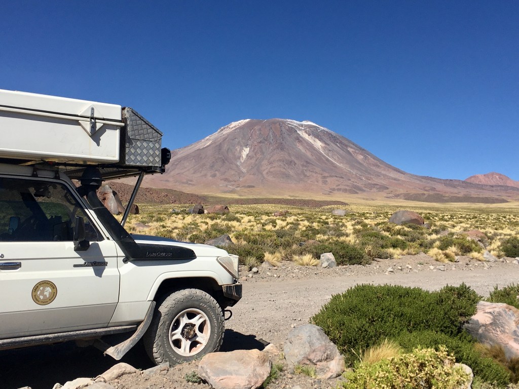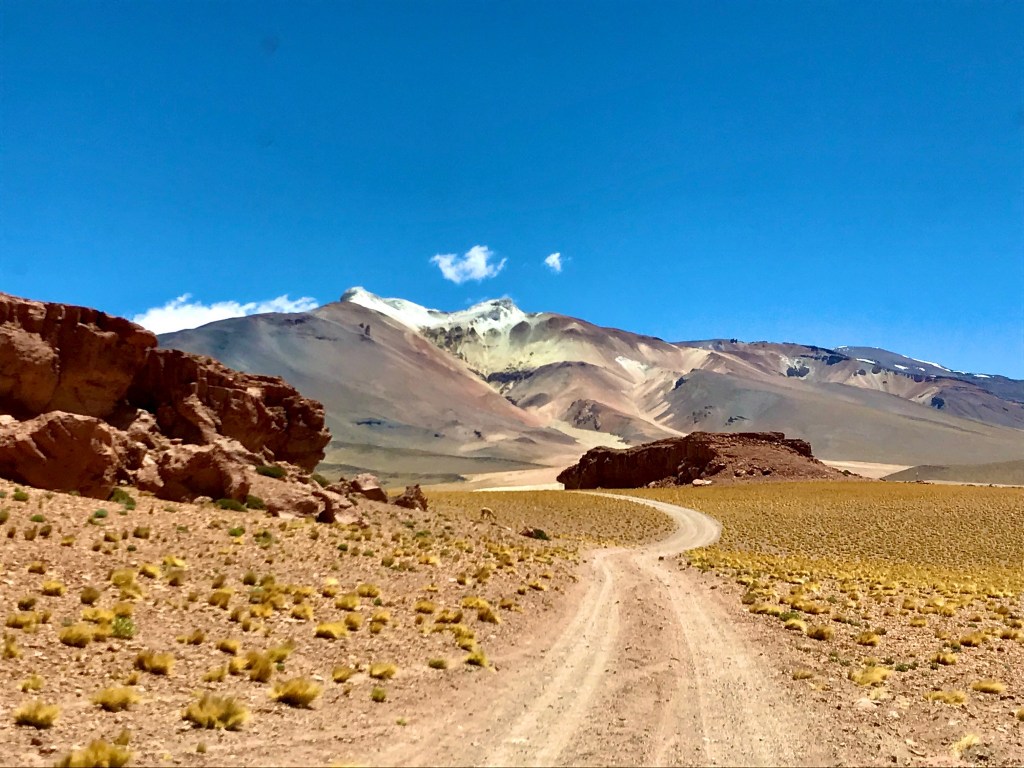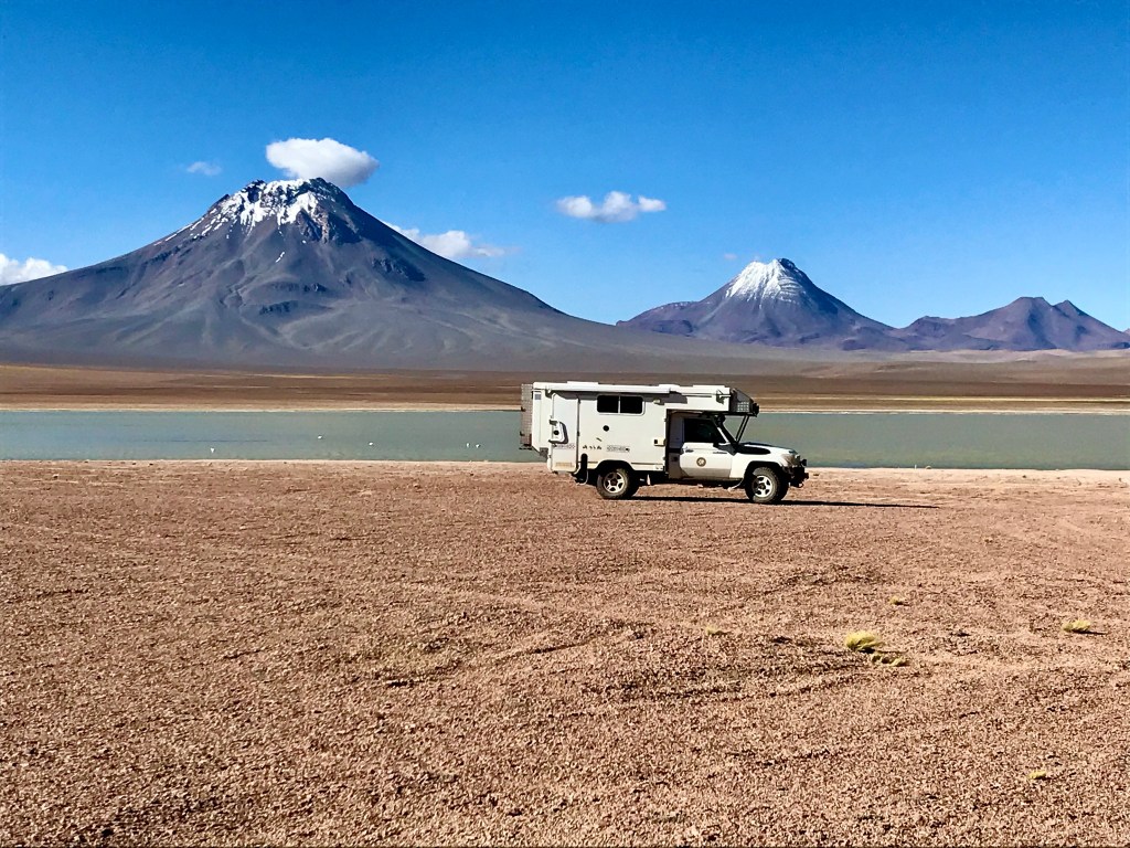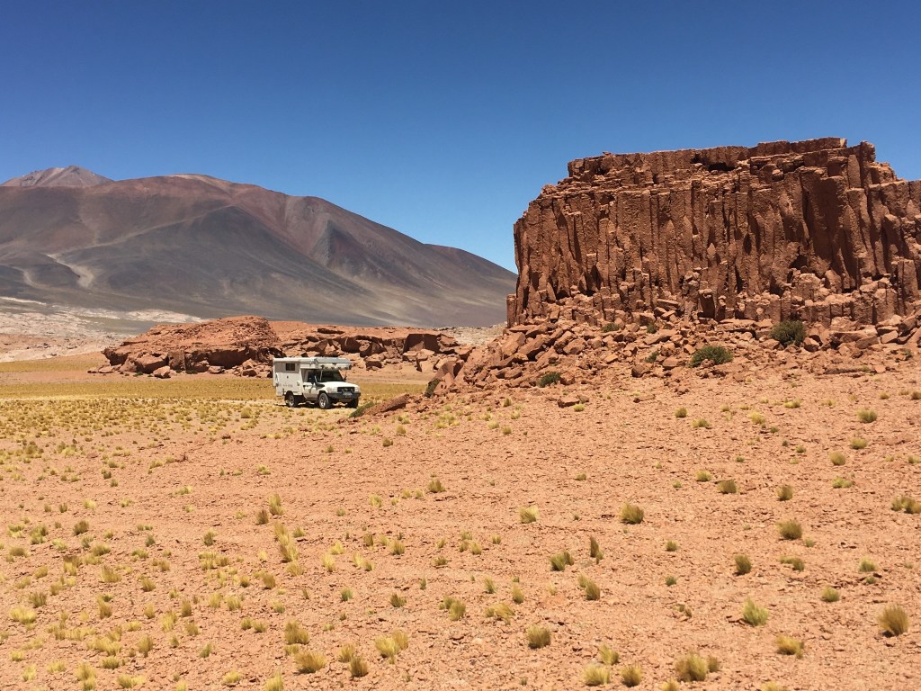 Le clou de notre passage dans le désert est sans conteste notre escapade dans les montagnes a une centaine de kilomètres à l’est de San Pedro, deux jours de pur bonheur de par les paysages grandioses rencontrés avec des lagunes totalement improbables à plus de 4000m, des lamas rencontré au détour de la piste, des couleurs sublimes chaque instant et un bivouac à 4500m seuls au monde ! ) tout content d’avoir un vrai chauffage alors qu’il gel dehors !). Seule petite ombre au tableau des pistes souvent rendues difficiles pour Tommy car le manque d’oxygène lié à l’altitude conjugué a une tôle ondulée pierreuse et très marquée nous ont fortement handicapé lors des 2500m de l’ascension (nombreux segments en seconde à 10 km /heure). C’est dans ces moments-là que l’on rêve à un turbo pour son moteur !