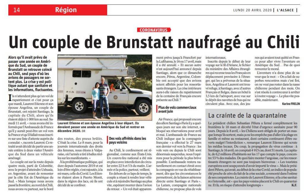 Dear Angelina and Laurent, I’ve been silently following your blogs and thinking a lot about you in the past weeks with the crisis hitting Europe in full force and tourists stuck everywhere. It made me think about what I would have done had this happen during my travels (I’m pretty sure I would not have managed as efficiently as you guys) and I’m very sorry to read that you had to cut the trip short. I do hope that you will get home safely and that you will stay healthy!