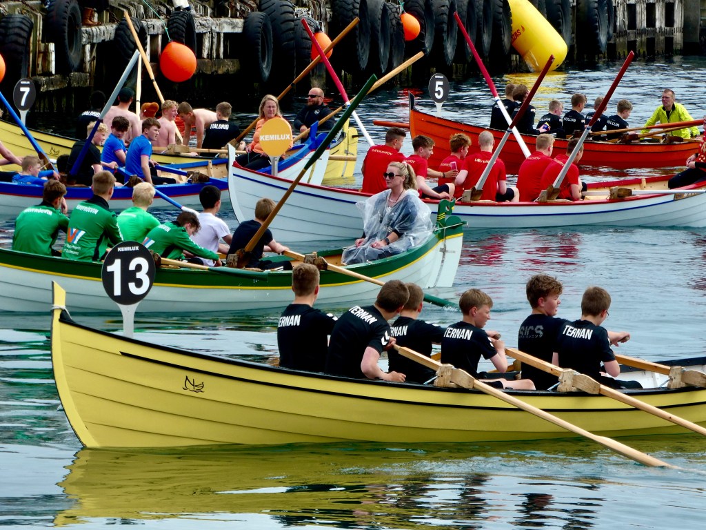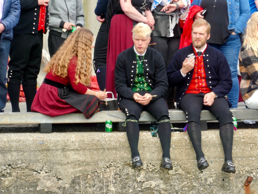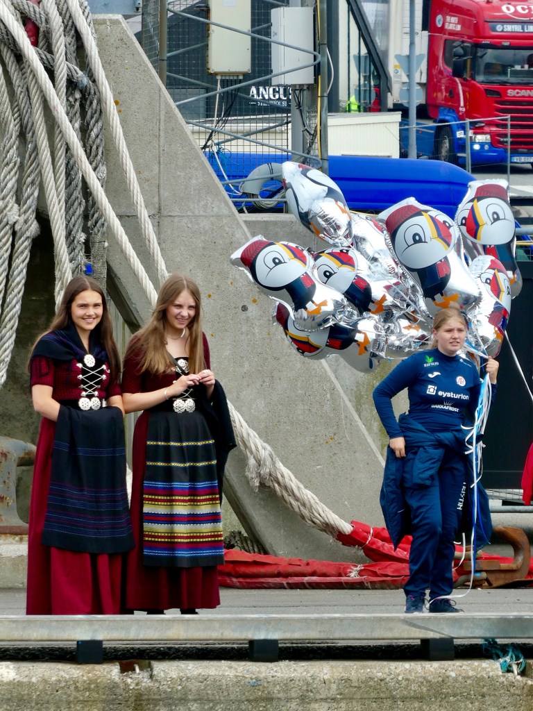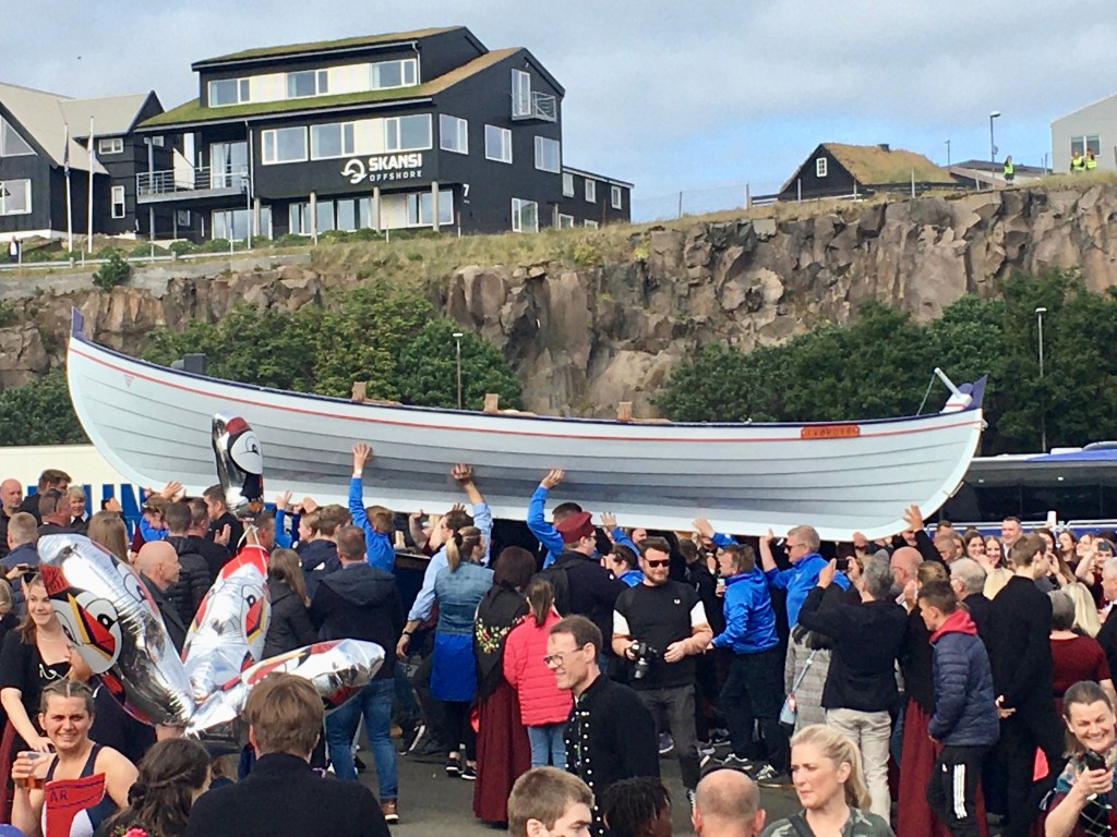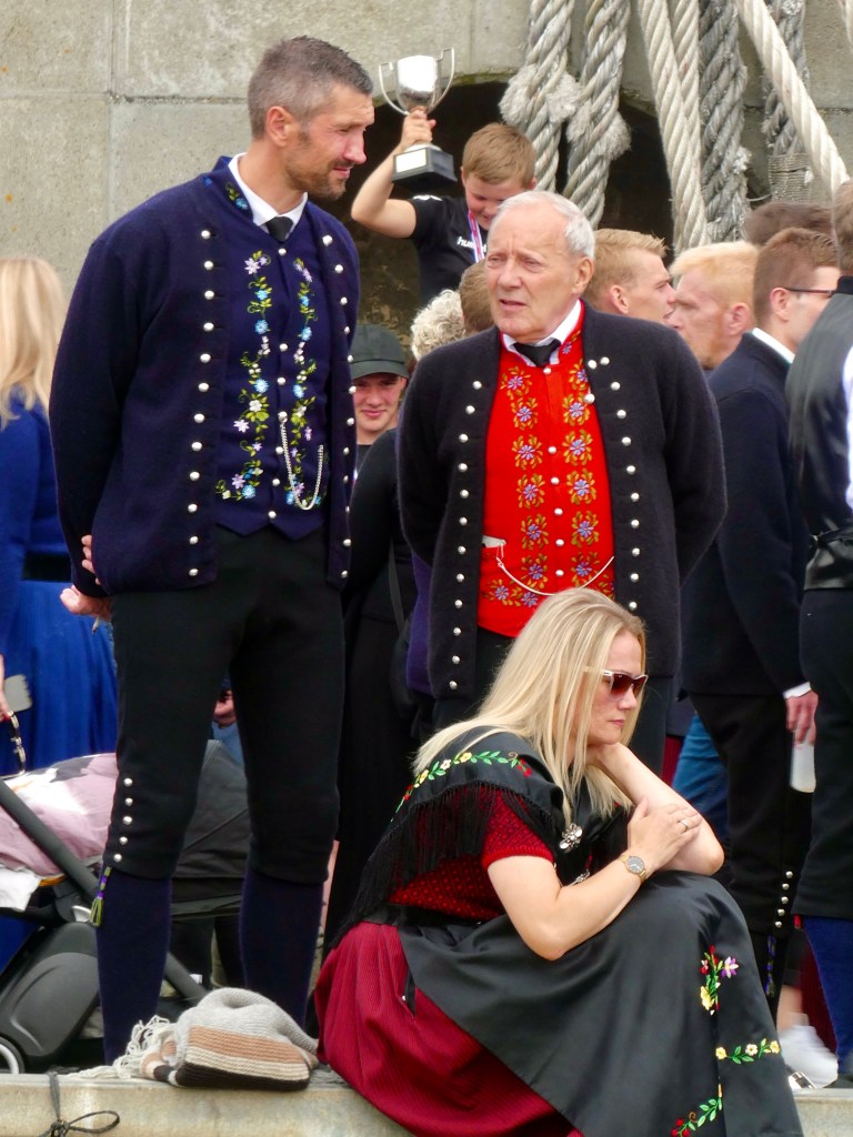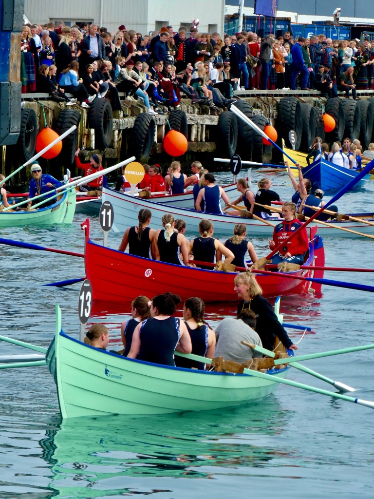 Hier nous avons assistés aux festivités de la fête nationale des Féroé organisées dans la capitale des iles Tórshavn (20000 habitants). Première chose frappante 70% des locaux revêtent le costume traditionnel et déambulent dans la ville