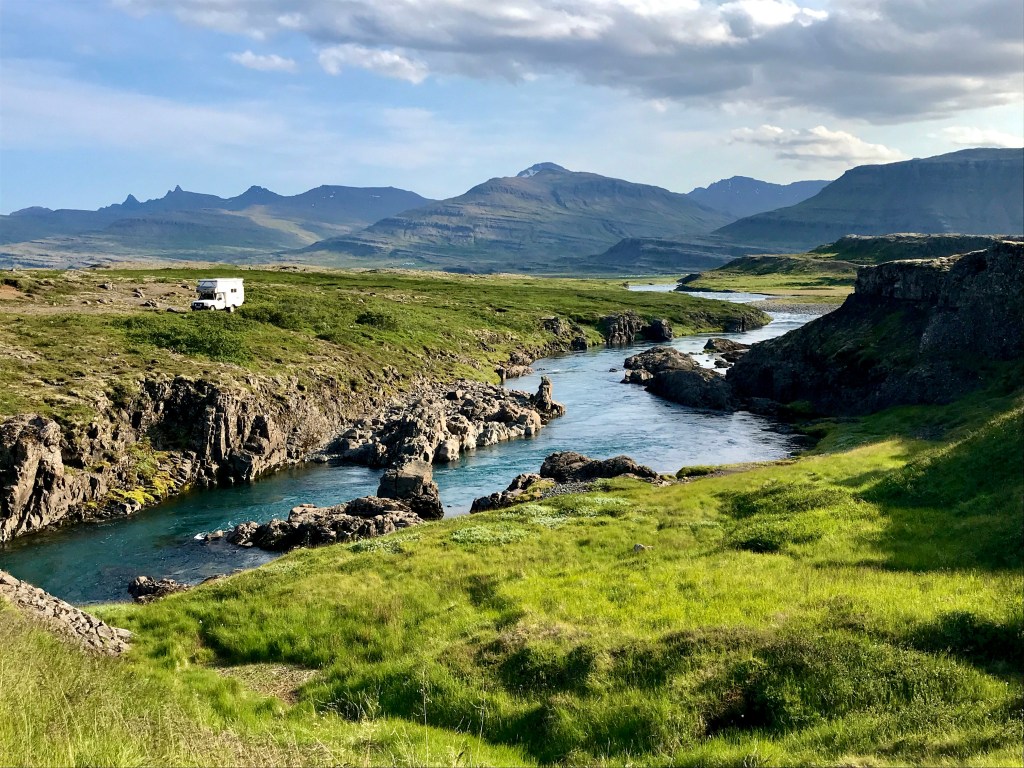 Je n’avais entendu que des superlatifs à propos de l’Islande ! Personnellement mon ressenti est un peu plus mitigé. Coté géologique, relief et paysages l’ile est très riche et les Islandais ont su concilier avec beaucoup d’adresse l’afflux de touristes (2 millions par an hors covid) tout en préservant l’authenticité des sites naturels (pas de Disneyland pour touristes à l’exception peut-être du site de bains géothermaux du Blue Lagoon). Cette préservation de la nature si fragile passant également par un balisage très strict des lieux de stationnement pour les campings car qui après de nombreux abus sont maintenant interdits de stationnement hors les campings réservés à cet effet. Difficile dans ces conditions de bivouaquer en pleine nature, mais nous avons quand même pu profiter de quelques spots isolés mémorables en pleine nature.