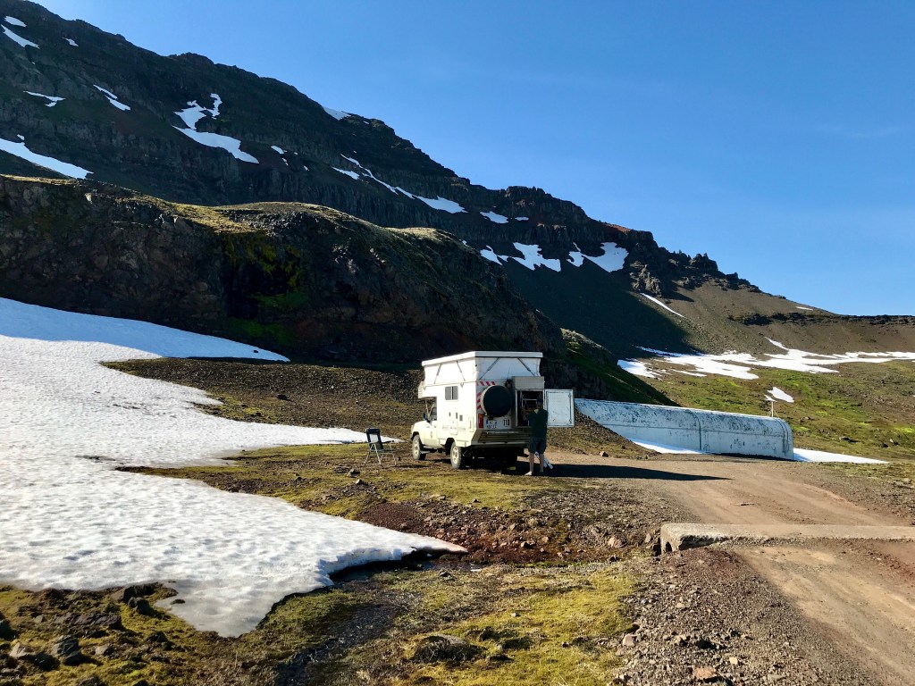 De nombreuses infrastructures à destination des touristes tant pour leur confort que pour leur divertissement. Pour ceux qui comme nous préférons les chemins de traverses aux parcours balisés, l’Islande permet via les routes de montagnes (routes F 4×4 obligatoire) de découvrir des lieux somptueux éloignés de la foule. Malheureusement nous n’en avons parcouru que quelques-unes car à notre arrivée, nombreuses étaient celles encore fermées dû a des chutes neiges tardives. Notre boite de vitesse en déliquescence nous a également dissuadé de parcourir plusieurs d’entre elles que nous avions prévue d’emprunter.