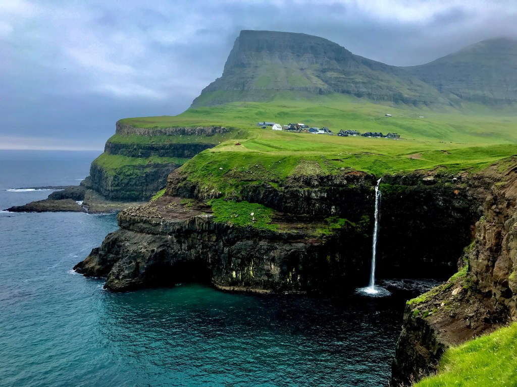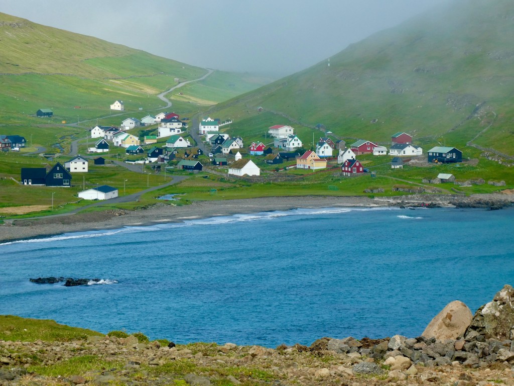 Ayant repris le ferry pour une escale d’une semaine aux iles Féroé nous pensions avoir clos le chapitre incident mécaniques eh bien pas de chance ! l’embrayage lui aussi ayant décidé qu’il avait également bien besoin d’une remise a neuf, nous avons jugé plus responsable d’économiser Tommy en l’installant dans un camping et lui avons préféré une petite citadine en location. C’est à l’usage en parcourant les iles avec notre voiture de location que nous avons réalisé combien le choix d’une location plutôt que d’utiliser notre propre véhicule avait été judicieux. En effet mis à part les quelques routes principales a double sens la majorité des accès aux petits villages au fond des fjords ou en bordure de la mer se font via des chemins certes goudronné mais en voie unique mais néanmoins avec circulation a double sens (c’est également le cas de quelques tunnels). Donc on ne croise pratiquement pas de campings cars sur ces routes à la conduite périlleuse. Ici pas de pistes pour s’échapper du trafic et ici plus qu’en Islande les iles sont restées totalement authentiques, mieux vaut avoir prévu ses sandwichs pour l’excursion du jour car vous ne trouverez aucun restaurant a votre arrivée dans le petit village a votre arrivée.